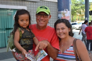 O casal Eliane Santana e Isaac Schuster, pais da pequena Sofia, fizeram questão de pegar uma revista. “A leitura faz com que a gente desenvolva mais rápido a questão intelectual, e isso ajuda na fala, pronúncia... procuramos ler muito para ela, contar ‘historinhas’ e estimular a fazer leitura também das imagens. Acho isso muito importante. Trazemos histórias com cunho educacional, que faz com que as crianças vejam o mundo ao redor”, disse a mãe.